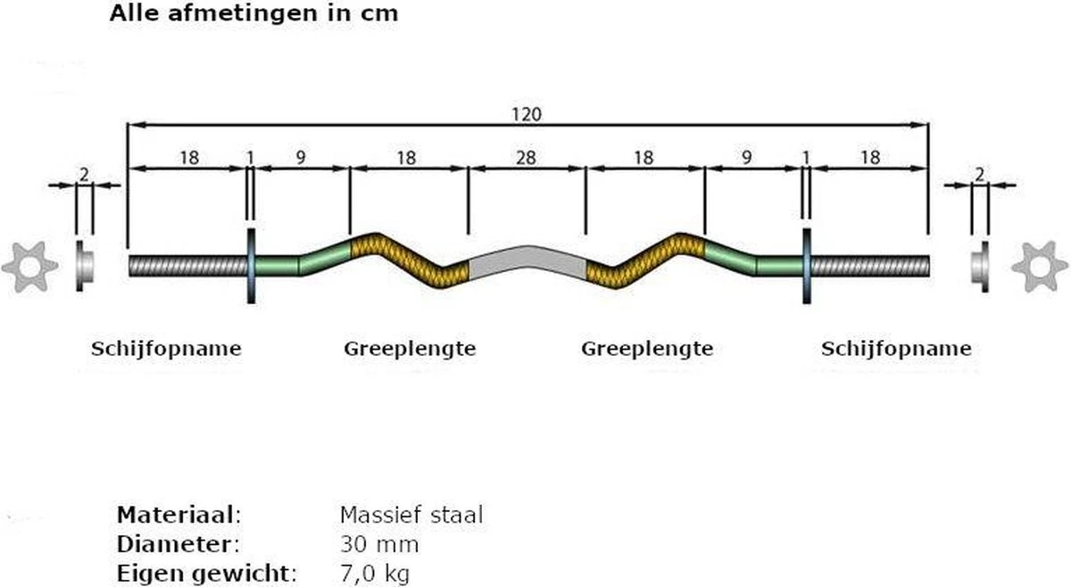 Onze halterstangen met een diameter van 30 mm en onze halterschijven met een boring van 30/31 mm zijn perfect op elkaar afgestemd om verschuiven of klapperen tijdens de training te voorkomen.